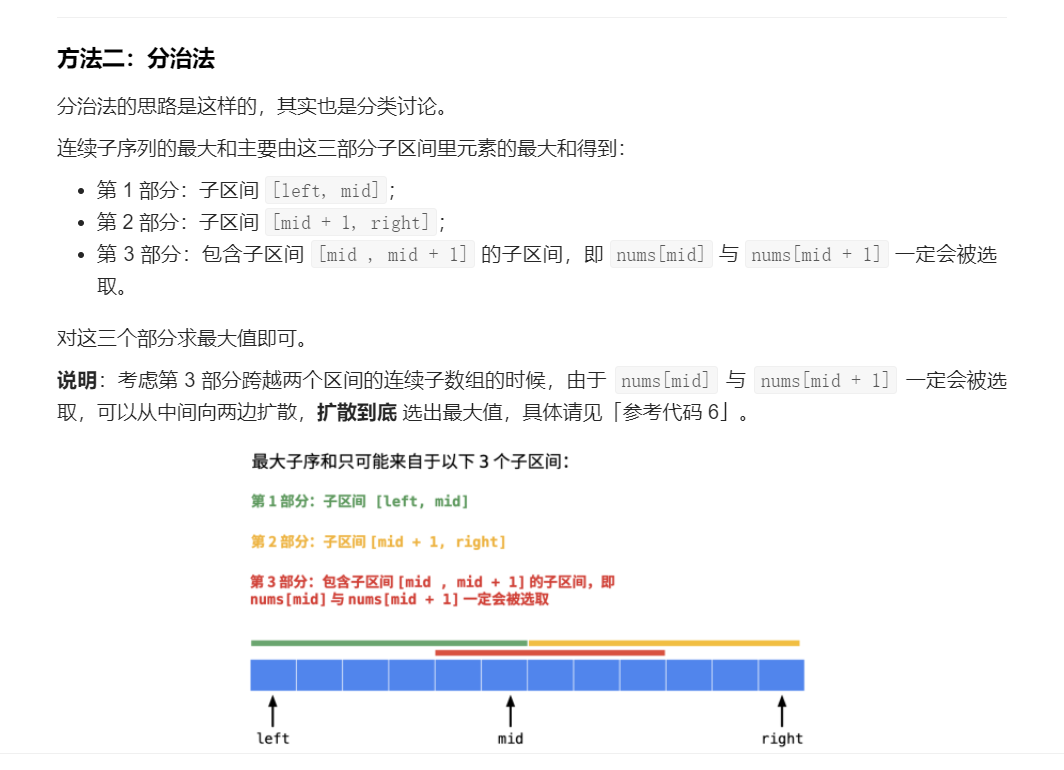 LeetCode 53. 分治法解决最大子序列和(Java)