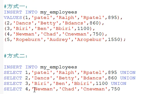 3、假如表中有可以为null的字段,注意可以通过以下两种方式插入null值