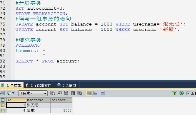 ## 步骤2. 编写事务中的sql语句(主要是 select, insert,update,delete)