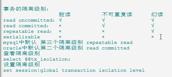 | 读未提交数据(read uncommitted) | 允许事务读取未被其他事务提交的变更,脏读,不可重复读和幻读的问题都会出现 |