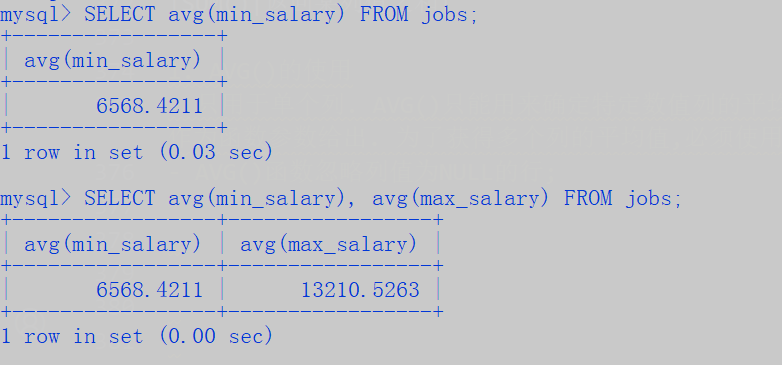 - 只用于单个列. AVG()只能用来确定特定数值列的平均值,而且列名必须作为函数参数给出. 为了获得多个列的平均值,必须使用多个AVG()函数;