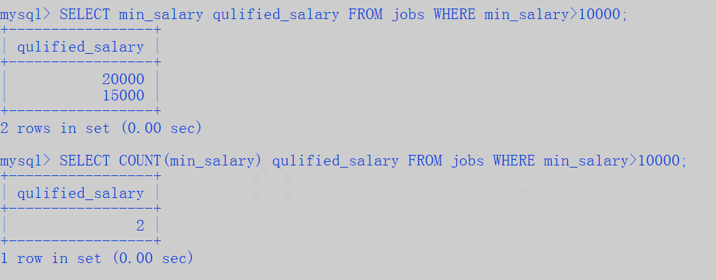 COUNT(列名)对特定列中具有值的行进行计数,忽略NULL值.
