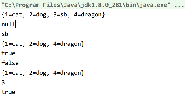 - 调用 V remove(Object key)删除Map中元素时,在成功删除后会返回被删除键所对应的Key值. 若Map没有对应的Key值,则返回 null;