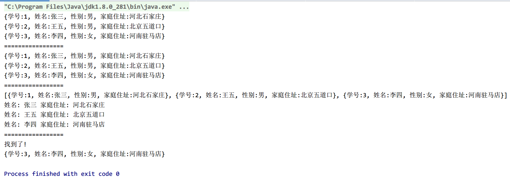 System.out.println("家庭住址: "+studentEntity.getAdress());