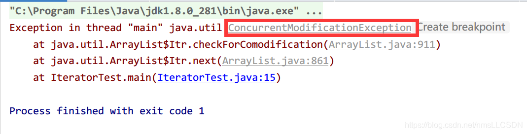 在使用迭代器对集合中的对象进行遍历时,如果使用集合类的remove()方法删除集合中的元素时,会发生这种异常.出现异常的原因是集合中删除了元素后会使得迭代器预期的迭代次数发生改变,导致迭代的结果不准确; -