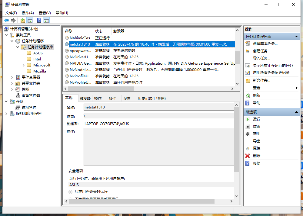 - 在Windows的任务计划程序中,可以查看到新创建的任务:
