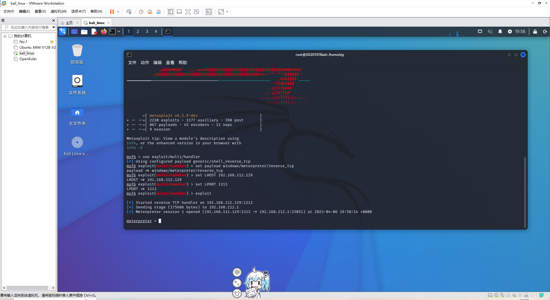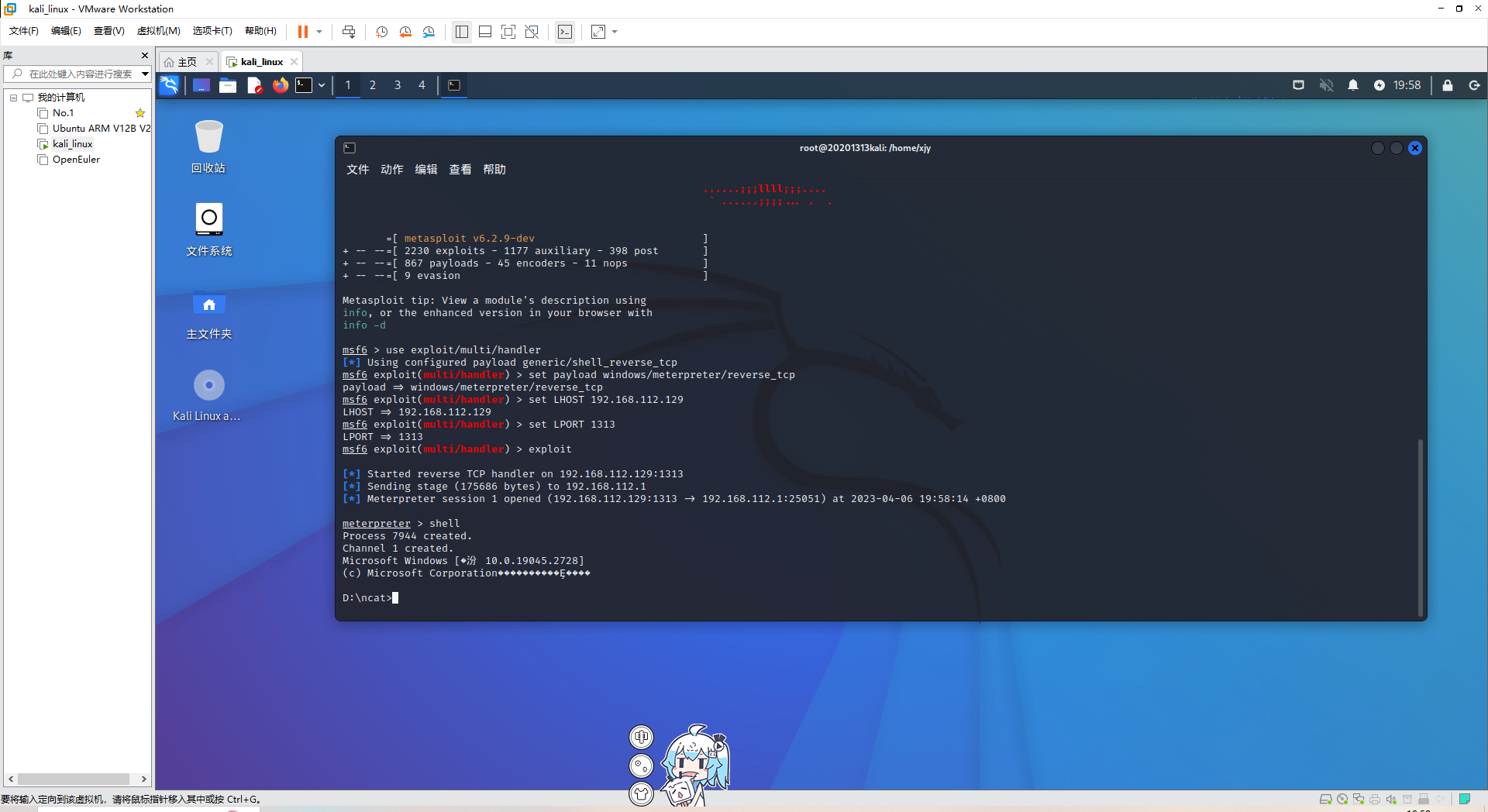 快照二:运行后门程序并在kali中实现回连,保存为Snapshot #2
