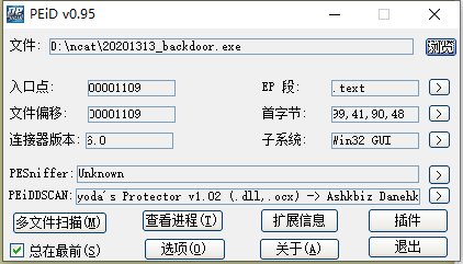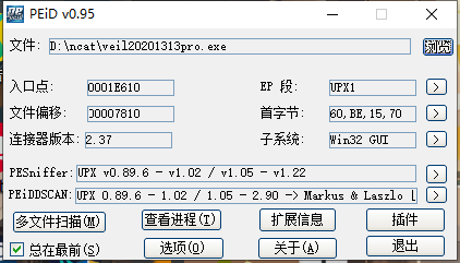 - 查看经过压缩壳的后门程序,可以查看到压缩壳的版本