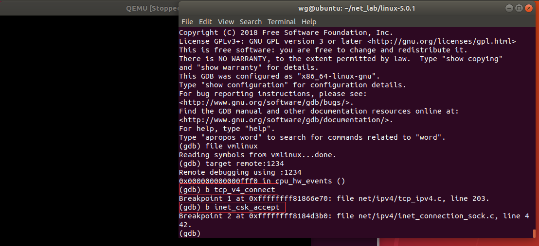 实验环境:ubuntu18.04,用qemu虚拟加载linux-5.0.1内核,在MenuOS中添加简单TCP通信demo命令。