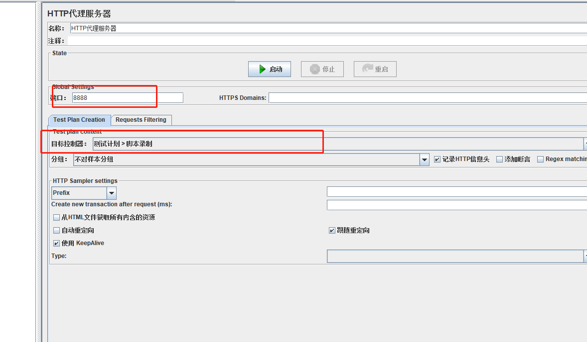3、端口号可以随便设置,选择把要录制的接口放在的线程组位置