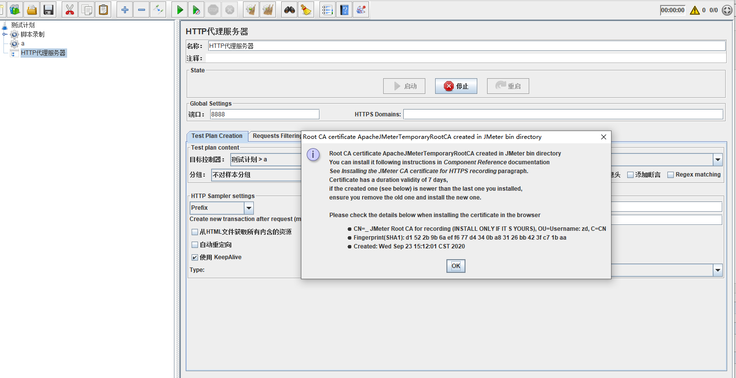 6、然后点击启动就可以开始录制脚本了,点击OK,要停止的时候点击停止