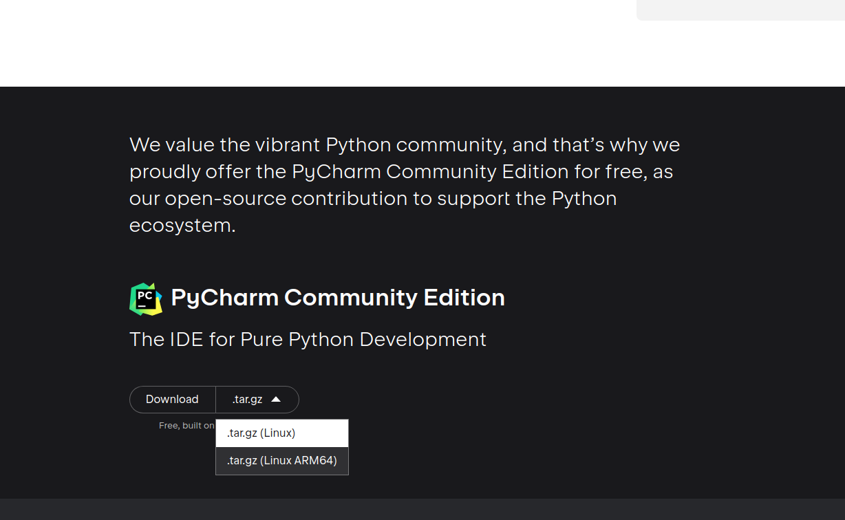 这里选择社区版:PyCharm Community Edition (Linux ARM64),社区版对个人来说够了,主要是免费。
