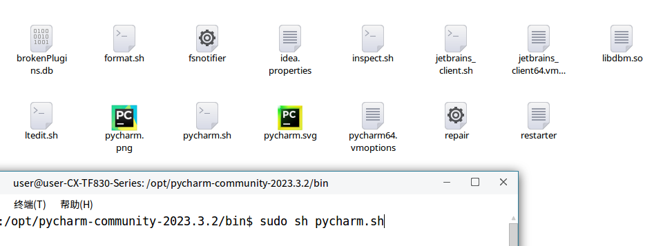 sudo sh pycharm.sh