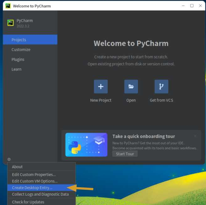 出现这个后选择 Create Desktop Entry ,即添加桌面快捷方式,完成之后就可以在桌面打开了。