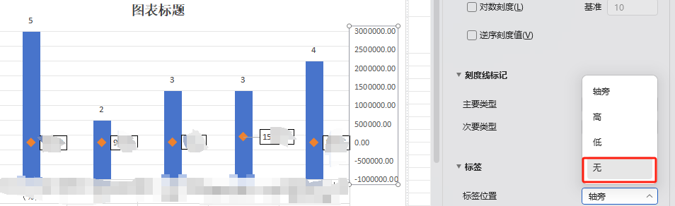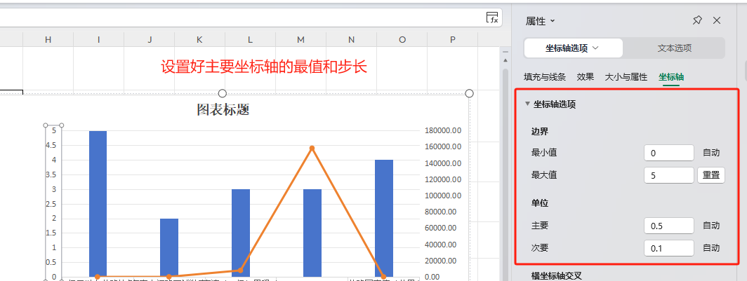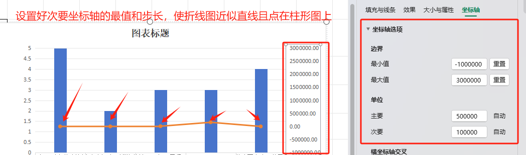 通过改变次要坐标轴的最值来调整散点的位置