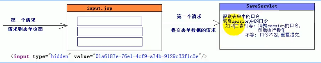 <%--解决表单的重复提交----通过token令牌(其实跟验证码一样的)UUID 【一份在表单中,一份存到session传递到servlet,用于判断两份UUID 是否一致】 --%> <% //生成一个随机数【口令】 String token = UUID.randomUUID().toString(); //存放与session中用以判断 session.setAttribute("TOKEN_IN_SESSION", token); %> <form action="/transform" method="post"> <%-- 表单中的UUID --%> <input type="hidden" name="token" value="<%=token%>"/> 转账金额: <input type="text" name="money" required/></br> <input type="submit" value="俺的钱过去啦"/> </form> |