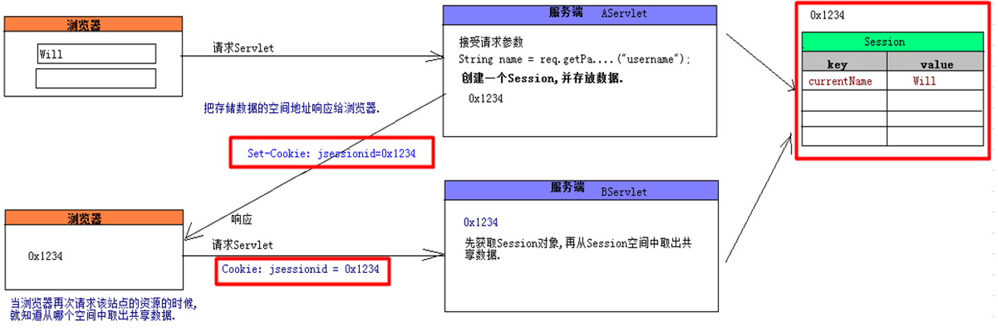 ▷ 会话跟踪是很重要的事情。理论上,一个用户的所有请求操作都应该属于同一个会话,而另一个用户的所有请求操作则应该属于另一个会话,二者不能混淆。