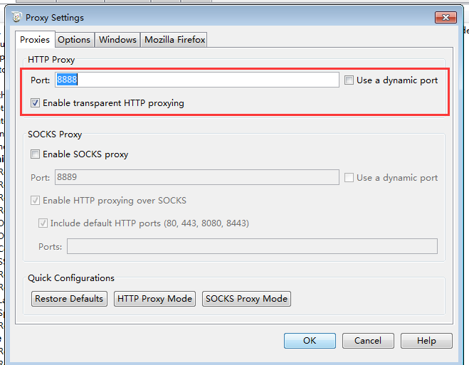 在Charles的菜单栏上选择“Proxy”->“Proxy Settings”,填入代理端口8888(注意,这个端口不一定填写8888,也可以写别的端口,但是需要记住这个段扩,因为这里设置的允许接入的端口,手机端配置的时候需要用到),并且勾上”Enable transparent HTTP proxying” 就完成了在Charles上的设置。如下图;