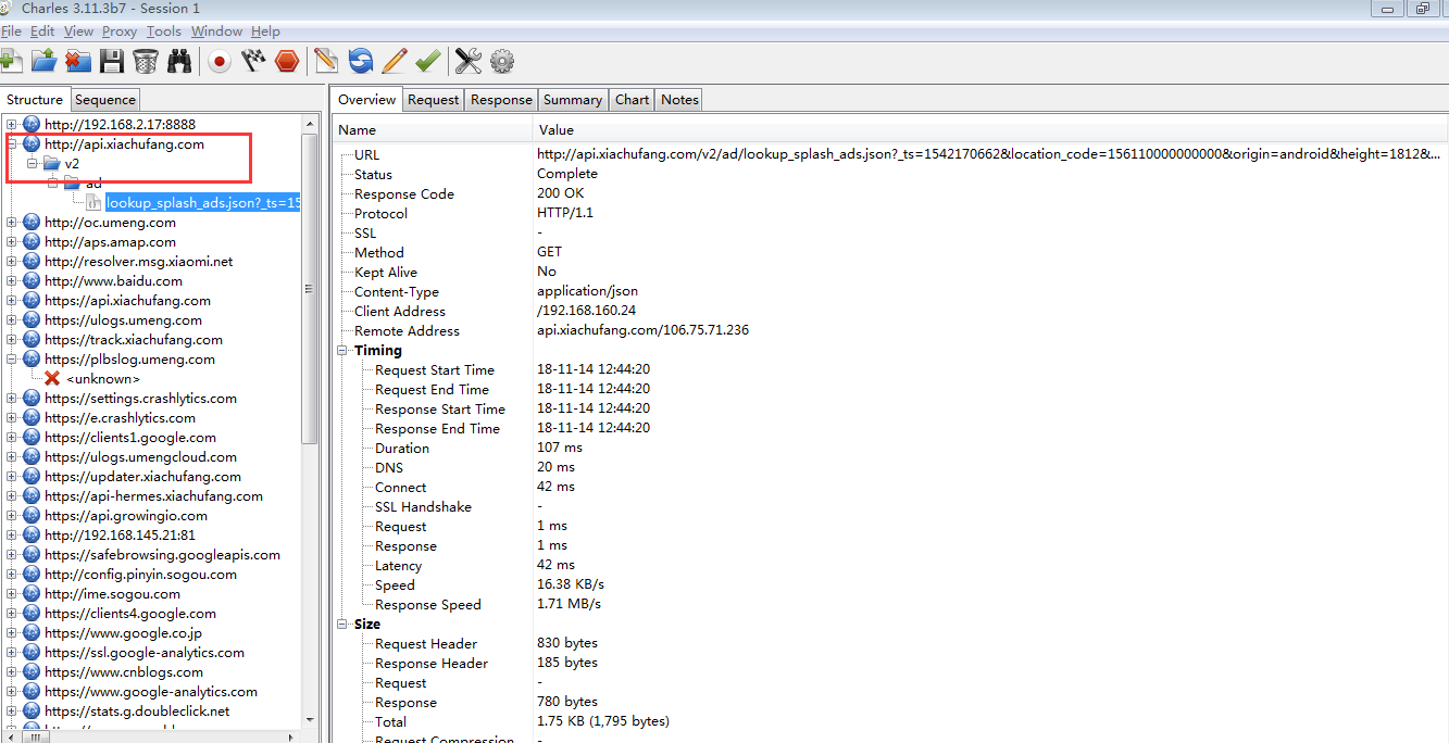 如上图的弹窗,点击允许即可;此时已经配对成功,开始愉快的抓包吧;手机上打开下厨房,电脑上能看到http接口