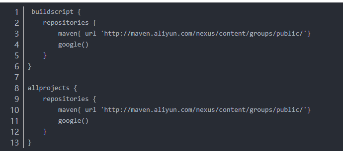 maven{ url 'http://maven.aliyun.com/nexus/content/groups/public/'}