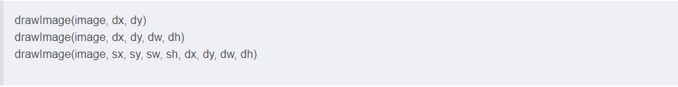 第一个参数image可以用HTMLImageElement,HTMLCanvasElement或者HTMLVideoElement作为参数。