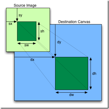 dw和dh是image在canvas中即将绘制区域(相对dx和dy坐标的偏移量)的宽度和高度值