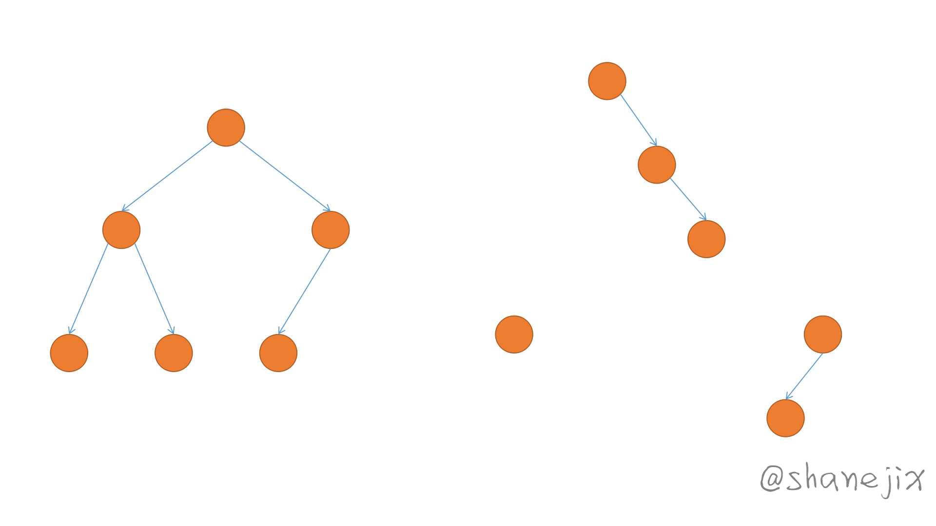 假设完全二叉树高度为 h (h>=1),那么至少有 2^(h -1) 个节点,至多有 2^h - 1 个节点;
