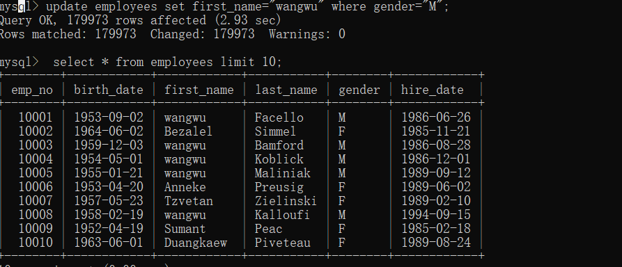 批量修改:update 表或库 set 字符串=“新内容”;