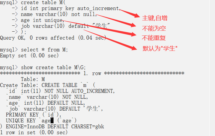 1,auto_increment:自增(1,字面意思,自动增加,若前段数据被删除,重新输入继续沿旧数据自增2,自增一般与主键连用)