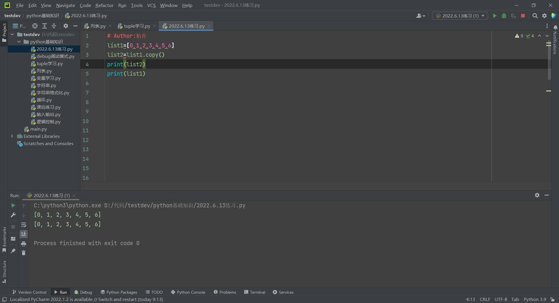 6,复制列表:copy