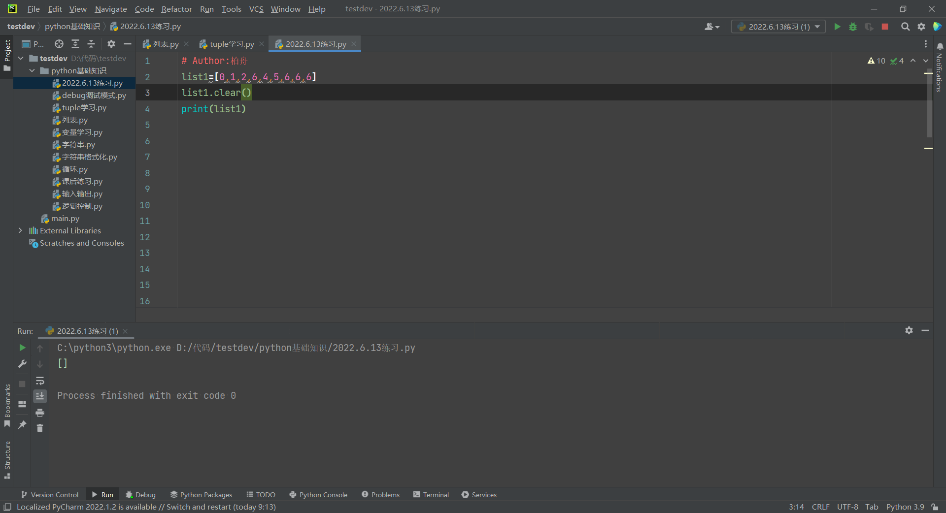 10,清空列表:clear
