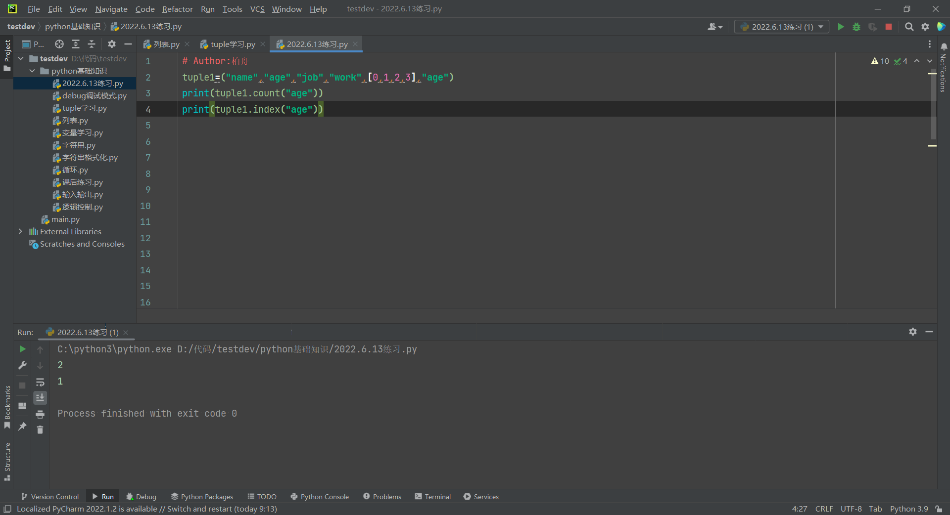 2,当元组里面只有一个数据的时候,它的数据类型是字符串,加上逗号以后就是元组
