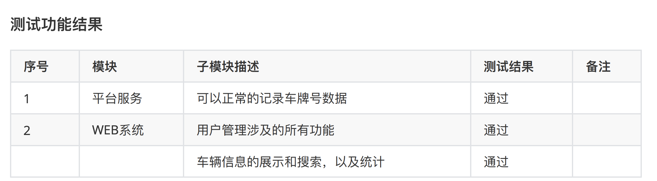 2、新功能测试结果:本次迭代新功能测试的结果(只有一个结果就是通过/pass)