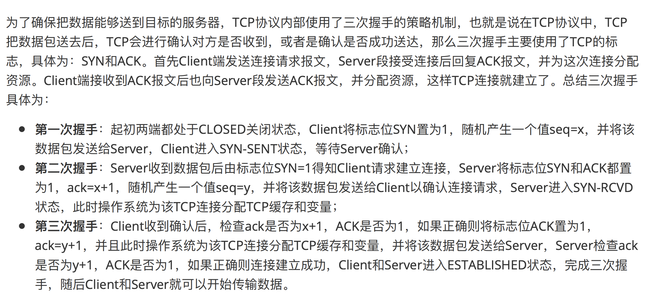 第二次握手:server收到请求,后发送数据包给client确认连接