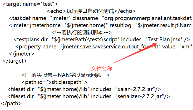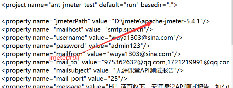 3、编写测试用例结束后,结合Ant构建工具,编写build.xml文件(执行脚本,测试报告目录,自动发送邮件)