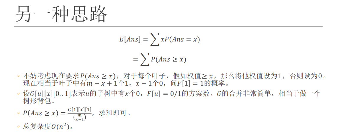 1 #include<bits/stdc++.h> 2 #define ll long long 3 using namespace std; 4 const ll N=10011,M=5011,mod=1e9+7; 5 int n,to[N],nxt[N],edge,head[N]; 6 ll dp[M][M][2],tmp[N][2],sz[N],fac[N]; 7 8 inline int re_ad() { 9 char ch=getchar(); int x=0,f=1; 10 while(ch<'0' || ch>'9') { if(ch=='-') f=-1; ch=getchar(); } 11 while('0'<=ch && ch<='9') x=(x<<1)+(x<<3)+ch-'0',ch=getchar(); 12 return x*f; 13 } 14 15 inline void addedge(int x,int y) { 16 ++edge,to[edge]=y,nxt[edge]=head[x],head[x]=edge; 17 } 18 19 void dfs(int d,int f,int x) { 20 for(int i=head[d];i;i=nxt[i]) { 21 int u=to[i]; 22 if(u==f) continue; 23 dfs(u,d,x^1); 24 if(!sz[d]) { 25 memcpy(dp[d],dp[u],sizeof(dp[d])); 26 sz[d]+=sz[u]; 27 continue; 28 } 29 memset(tmp,0,sizeof(tmp)); 30 for(int j=0;j<=sz[d];++j) for(int k=0;k<=sz[u];++k) { 31 (tmp[j+k][x^1]+=(dp[d][j][x^1]*dp[u][k][x^1])%mod)%=mod; 32 (tmp[j+k][x]+=(1ll*(dp[d][j][x^1]+dp[d][j][x])*(dp[u][k][x^1]+dp[u][k][x])%mod)-(1ll*dp[d][j][x^1]*dp[u][k][x^1]%mod))%=mod; 33 } 34 sz[d]+=sz[u]; 35 memcpy(dp[d],tmp,sizeof(dp[u])); 36 } 37 if(!sz[d]) ++sz[d],dp[d][0][0]=dp[d][1][1]=1; 38 } 39 40 int main() 41 { 42 int ex,ey; 43 n=re_ad(); 44 for(int i=1;i<=n-1;++i) ex=re_ad(),ey=re_ad(),addedge(ex,ey),addedge(ey,ex); 45 dfs(1,0,1); 46 int siz=sz[1]; 47 fac[0]=1; for(int i=1;i<=siz;++i) fac[i]=fac[i-1]*i%mod; 48 // for(int i=0;i<=siz;++i) printf("%lld ",fac[i]); puts(""); 49 ll ans=0; 50 for(int i=0;i<=siz;++i) (ans+=(1ll*fac[i]*fac[siz-i])%mod*dp[1][i][1]%mod)%=mod; 51 printf("%lld\n",ans); 52 return 0; 53 }