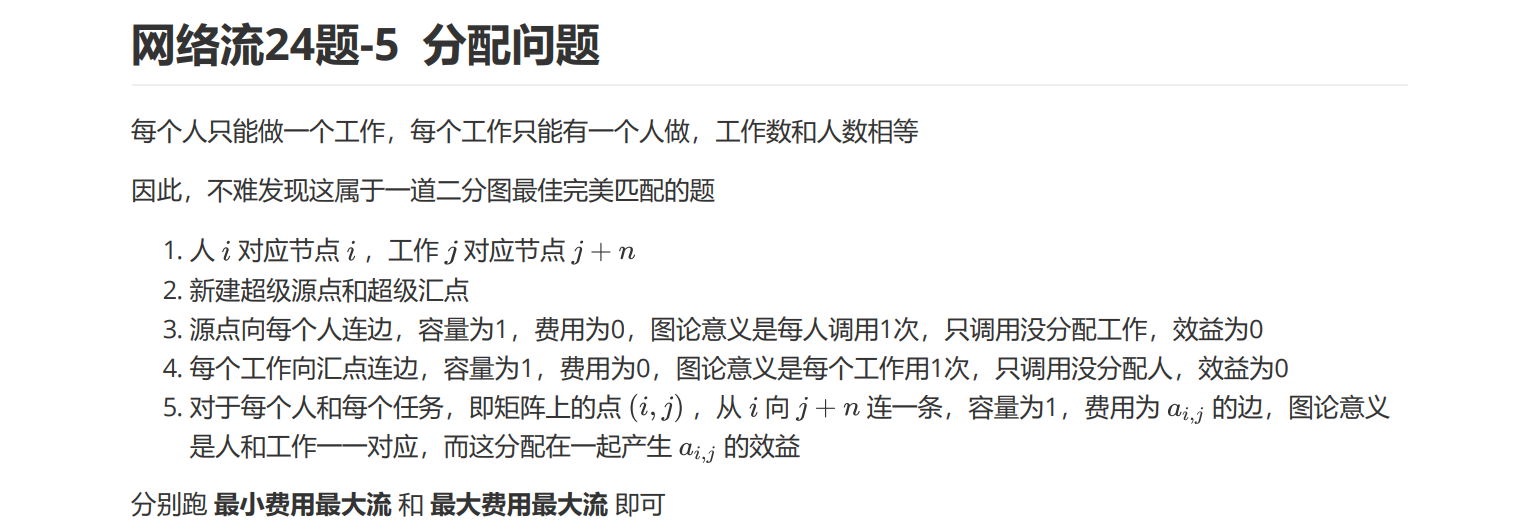 1 #include<bits/stdc++.h> 2 using namespace std; 3 const int N=211,M=4e4+11,inf=1<<29; 4 int n,a[N][N],st,ed,maxflow,maxx,minn; 5 int to[M],nxt[M],c[M],w[M],edge,head[N]; 6 int dis[N],incf[N],pre[N]; 7 bool vis[N]; 8 9 inline int re_ad() { 10 char ch=getchar(); int x=0,f=1; 11 while(ch<'0' || ch>'9') { if(ch=='-') f=-1; ch=getchar(); } 12 while('0'<=ch && ch<='9') x=(x<<1)+(x<<3)+ch-'0',ch=getchar(); 13 return x*f; 14 } 15 16 inline void addedge(int x,int y,int cc,int ww) { 17 ++edge,to[edge]=y,nxt[edge]=head[x],c[edge]=cc,w[edge]=ww,head[x]=edge; 18 ++edge,to[edge]=x,nxt[edge]=head[y],c[edge]=0,w[edge]=-ww,head[y]=edge; 19 } 20 21 inline bool SPFA_Min() { 22 memset(vis,false,sizeof(vis)); 23 memset(dis,0x3f,sizeof(dis)); 24 memset(pre,0,sizeof(pre)); 25 memset(incf,0x3f,sizeof(incf)); 26 queue<int> q; 27 q.push(st); 28 dis[st]=0,vis[st]=true; 29 while(!q.empty()) { 30 int u=q.front(),v; 31 vis[u]=false,q.pop(); 32 for(int i=head[u];i;i=nxt[i]) { 33 if(!c[i]) continue; 34 v=to[i]; 35 if(dis[u]+w[i]<dis[v]) { 36 dis[v]=dis[u]+w[i]; 37 incf[v]=min(incf[u],c[i]); 38 pre[v]=i; 39 if(!vis[v]) vis[v]=true,q.push(v); 40 } 41 } 42 } 43 // printf("min:dis[ed]: %d\n",dis[ed]); 44 if(dis[ed]==0x3f3f3f3f) return false; 45 return true; 46 } 47 48 inline void Update_Min() { 49 // printf("awa\n"); 50 int lj=ed,i; 51 while(lj!=st) { 52 i=pre[lj]; 53 c[i]-=incf[ed],c[i^1]+=incf[ed]; 54 lj=to[i^1]; 55 } 56 maxflow+=incf[ed]; 57 minn+=dis[ed]*incf[ed]; 58 } 59 60 inline bool SPFA_Max() { 61 memset(vis,false,sizeof(vis)); 62 memset(dis,0xcf,sizeof(dis)); 63 memset(pre,0,sizeof(pre)); 64 memset(incf,0x3f,sizeof(incf)); 65 queue<int> q; 66 q.push(st); 67 dis[st]=0,vis[st]=true; 68 // printf("ed: %d\n",dis[ed]); 69 while(!q.empty()) { 70 int u=q.front(),v; 71 // printf("max:u: %d %d\n",u,dis[u]); 72 vis[u]=false,q.pop(); 73 for(int i=head[u];i;i=nxt[i]) { 74 if(!c[i]) continue; 75 v=to[i]; 76 if(dis[u]+w[i]>dis[v]) { 77 dis[v]=dis[u]+w[i]; 78 incf[v]=min(incf[u],c[i]); 79 pre[v]=i; 80 if(!vis[v]) vis[v]=true,q.push(v); 81 } 82 } 83 } 84 // printf("max:dis[ed]: %d\n",dis[ed]); 85 if(dis[ed]==0xcfcfcfcf) return false; 86 return true; 87 } 88 89 inline void Update_Max() { 90 int lj=ed,i; 91 while(lj!=st) { 92 i=pre[lj]; 93 c[i]-=incf[ed],c[i^1]+=incf[ed]; 94 lj=to[i^1]; 95 } 96 maxflow+=incf[ed]; 97 maxx+=dis[ed]*incf[ed]; 98 } 99 100 int main() 101 { 102 n=re_ad(); 103 for(int i=1;i<=n;++i) for(int j=1;j<=n;++j) a[i][j]=re_ad(); 104 st=0,ed=n*2+1,edge=1,maxflow=0; 105 memset(head,0,sizeof(head)); 106 for(int i=1;i<=n;++i) for(int j=1;j<=n;++j) addedge(i,j+n,1,a[i][j]); 107 for(int i=1;i<=n;++i) addedge(st,i,1,0),addedge(i+n,ed,1,0); 108 while(SPFA_Min()) Update_Min(); 109 // printf("endif:min:%d\n",minn); 110 111 st=0,ed=n*2+1,edge=1,maxflow=0; 112 memset(head,0,sizeof(head)); 113 for(int i=1;i<=n;++i) for(int j=1;j<=n;++j) addedge(i,j+n,1,a[i][j]); 114 for(int i=1;i<=n;++i) addedge(st,i,1,0),addedge(i+n,ed,1,0); 115 while(SPFA_Max()) Update_Max(); 116 printf("%d\n%d\n",minn,maxx); 117 return 0; 118 }