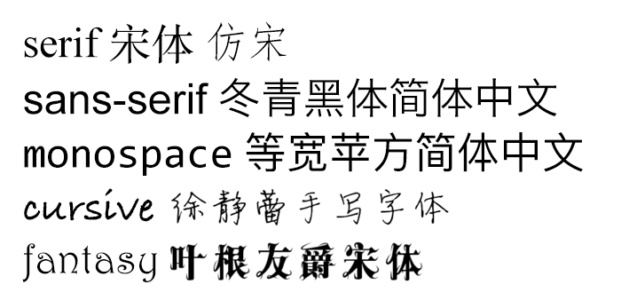 (摘自15.3.1 Generic font families)
