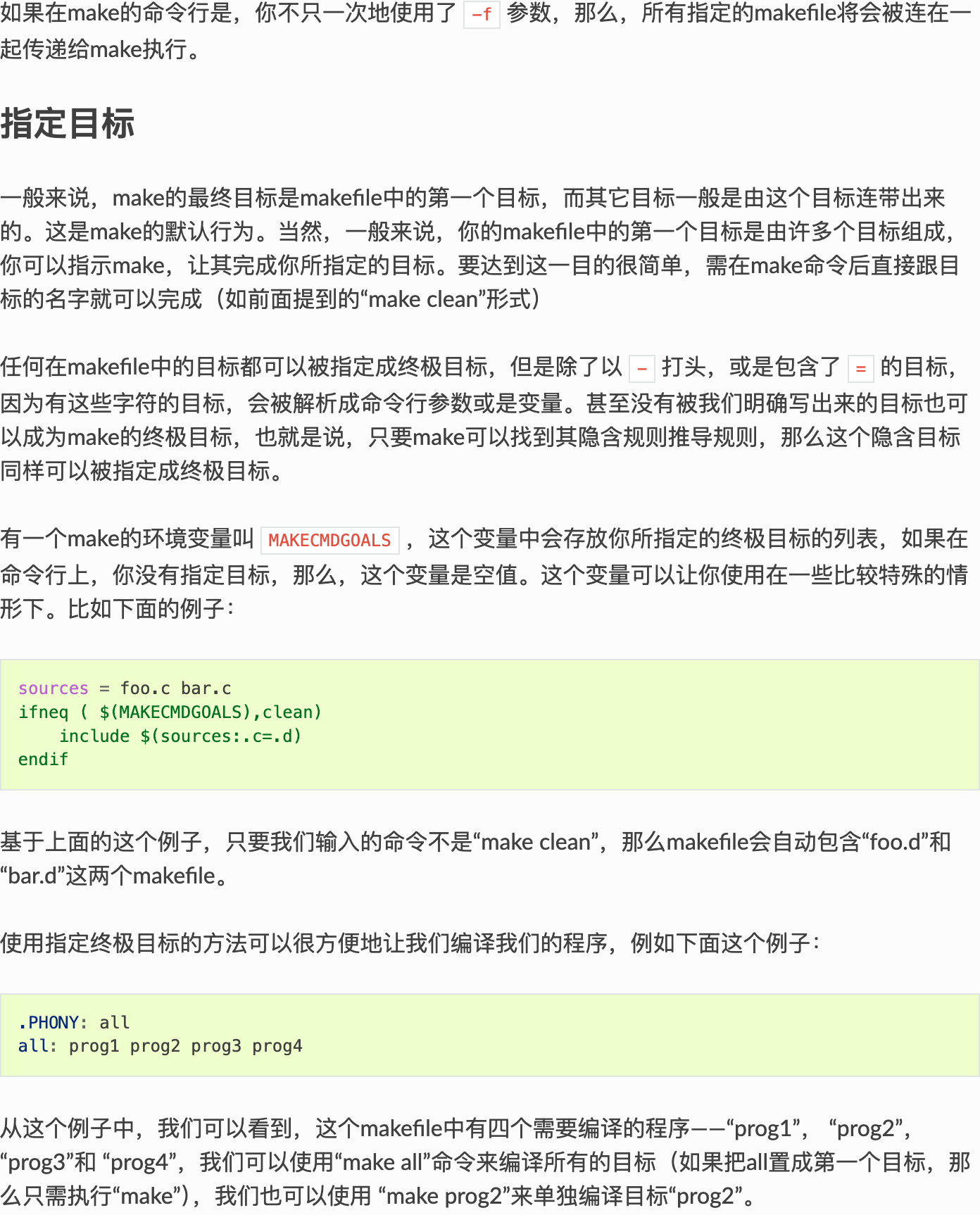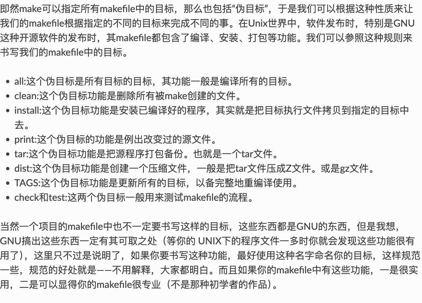 指定了make工具要实现的目标,目标可以是一个或多个(多个目标间用空格隔开)。