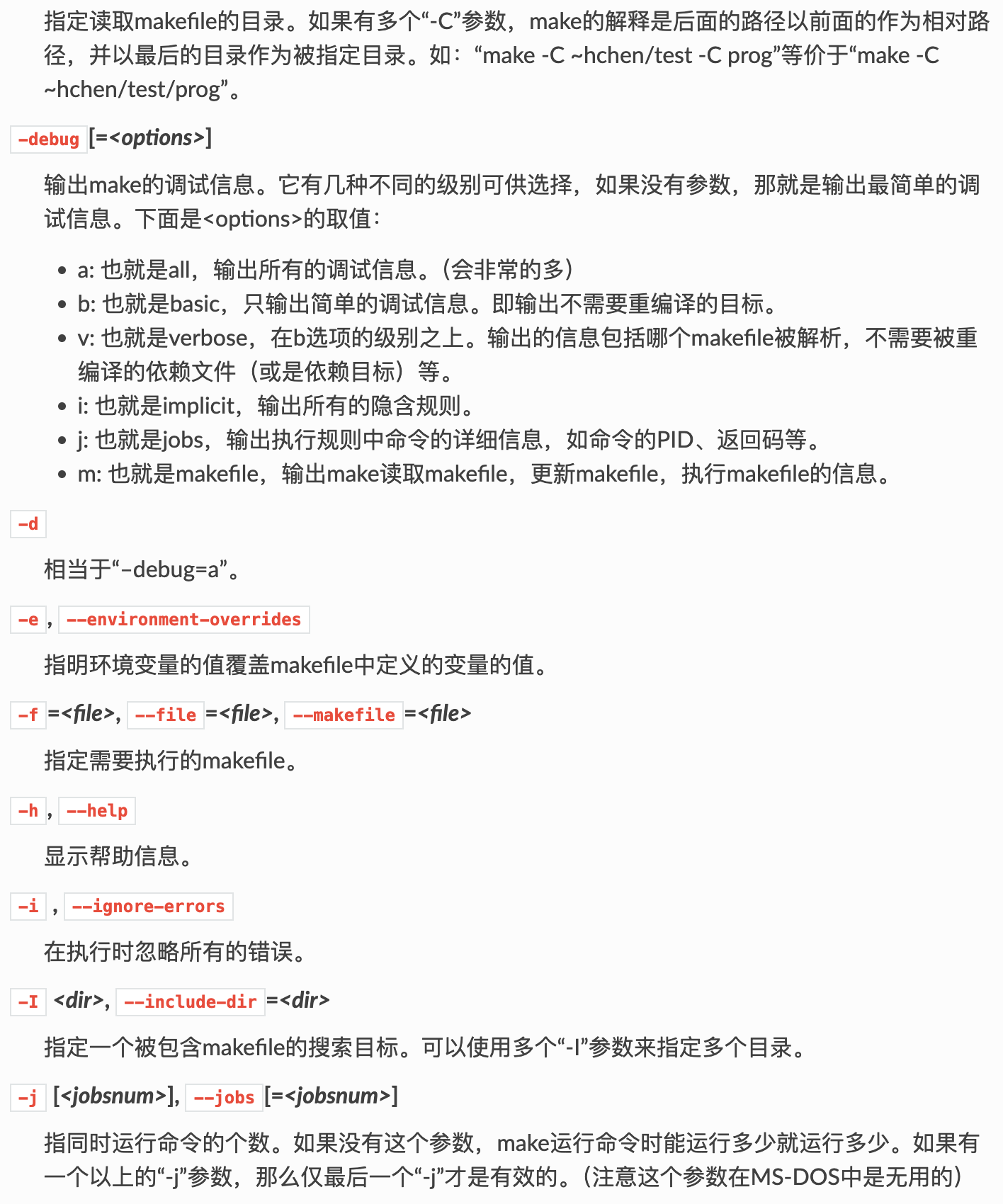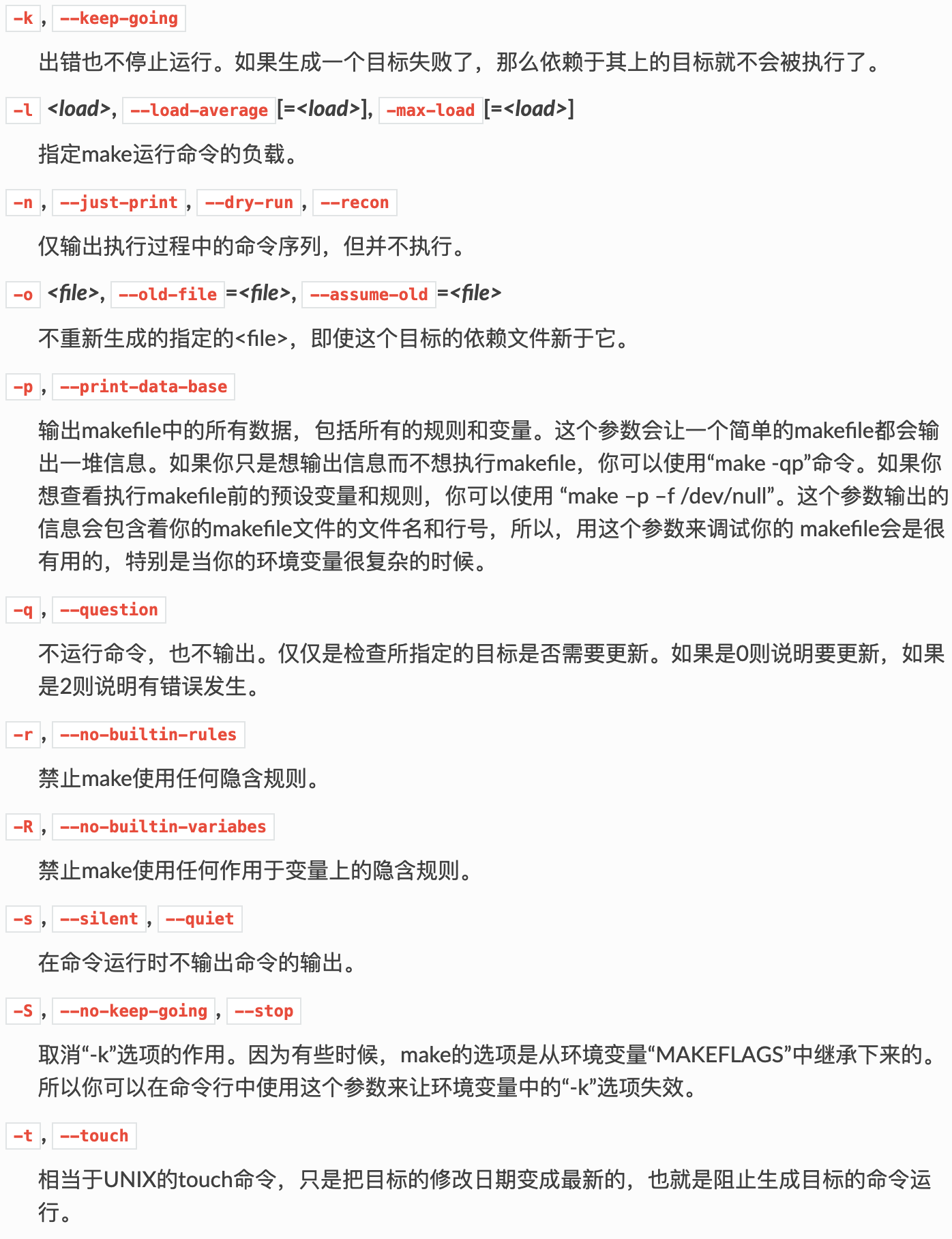make命令格式:make [ -f file ] [options ] [ targets ]