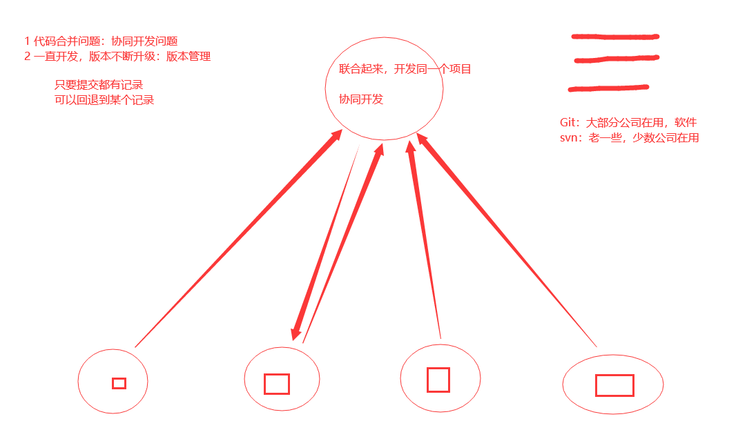 # svn:版本管理软件,它是集中式的版本管理,必须有个svn的服务端,服务端如果过来,svn就用不了了 # git :版本管理软件,它是一个分布式的版本管理,每个客户端都可以作为服务端,即便服务端挂了,也能进行版本管理(本地管理) # github:全球最大的开源远程git仓库,全球最大的开源仓库,git远程仓库 -如果我要写开源软件,本地装git,把代码提交到github -python监控公司代码有没有被传到github # gitee:中国最大的开源软件仓库 【私有仓库,花钱买空间】 # gitlab:公司内部的远程仓库,运维搭建维护