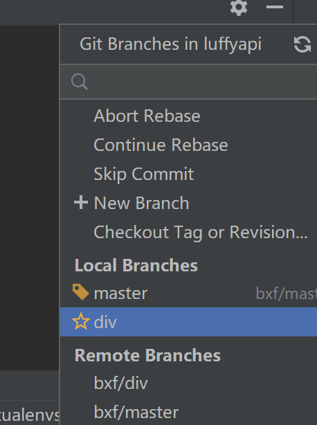 # 公司里,你们3个人开发了路飞项目,首页功能写完了---》上测试环境,给用户看---》然后继续开发---》开发了一段时间---》正好项目不能运行---》用户想看写到什么程度了 # 分支:通过分支,更方便协同开发,管理版本 # 分支操作 -查看分支: git branch # * 和绿色表示你当前所在的分支,查看本地分支 -创建 -git branch dev -切换分支 - git checkout dev -删除分支 -git branch -d dev # 在其他分支上才能删它 -合并分支:【可能会有冲突】 - 要把dev合并到master上 -回到master上,开始执行代码 git merge dev -查看远程分支:【后面会讲】 git branch -a