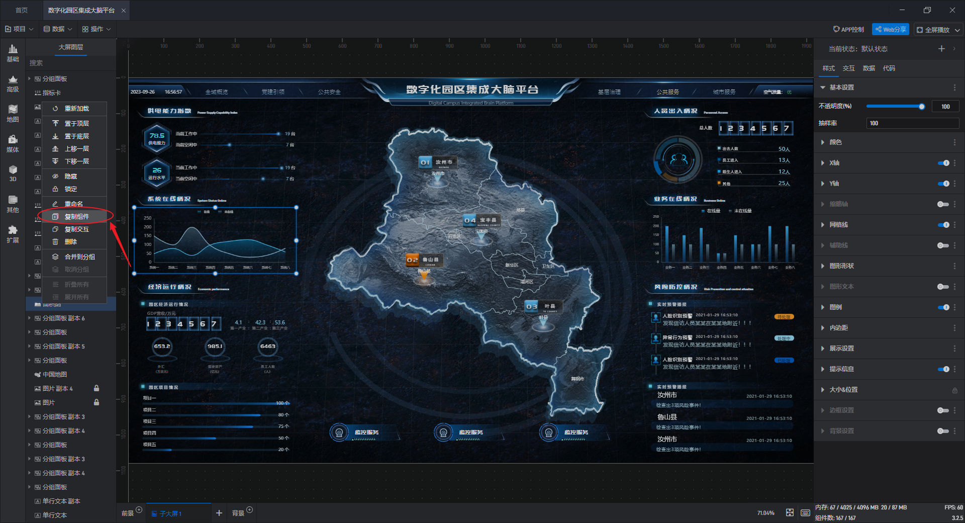 (2)在套用模板过程中,还有一个做法是将多个模板中的组件合并到一起。这个时候我们可以直接找到想要的组件,然后复制这个组件,粘贴到新的项目中,在复制组件过程中,数据会被一并复制过来,我们可以根据需求进行调整。