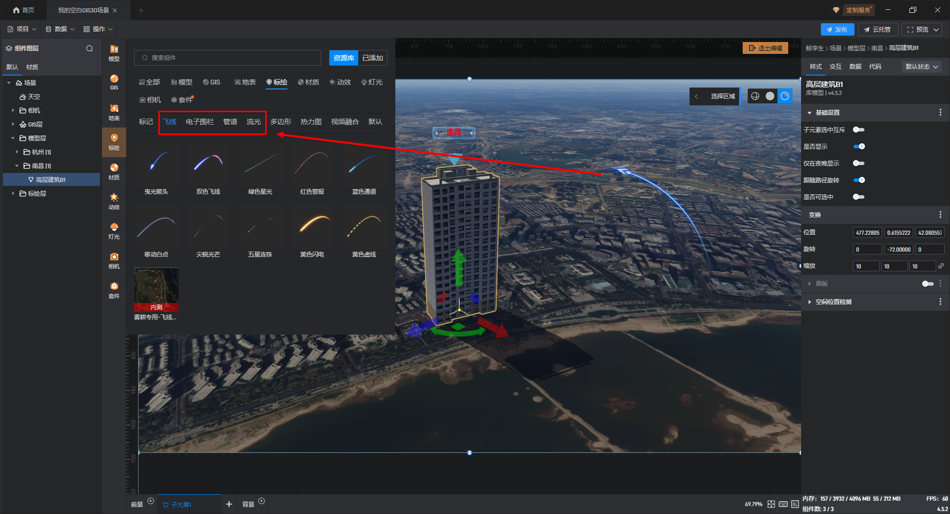 05 在三维场景中怎么平移、添加模型,可以用什么表示通信线路(飞线)?