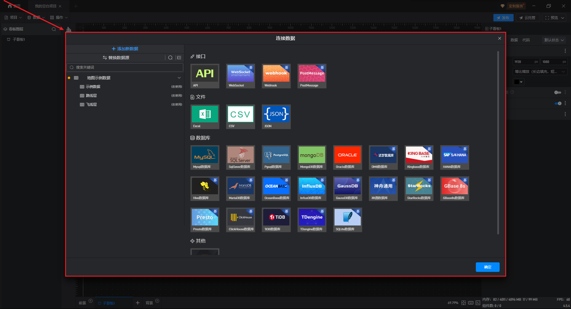 在山海鲸可视化4.5.4版本软件更新中,为了进一步方便大家的使用,山海鲸可视化在数据连接窗口中,新增了数据源搜索功能,输入关键字即可查找所需数据源。