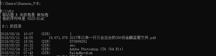 在cmd中利用dir 可以查看某文件夹下所有文件。如图: