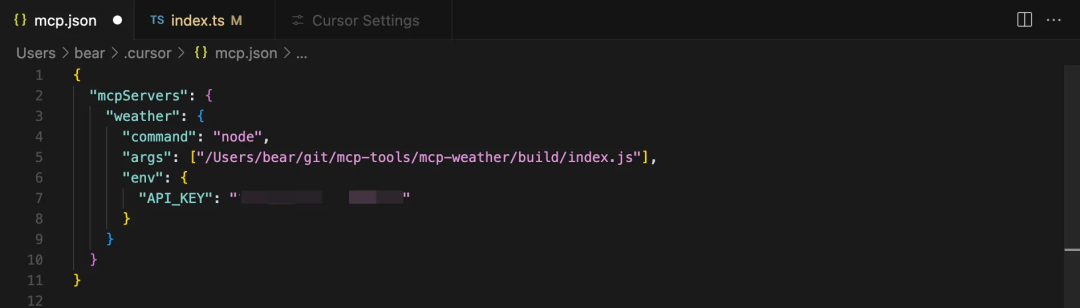MCP 工具的使用倒是比较简单,关键是 Client 端最好是用上最新的版本来支持 MCP 的新特性,比如 Cursor ,需要更新之后才能方便地配置环境变量 env,因为我们一般需要把 token 或 API_KEY 之类的密钥传给工具来进行接口调用。如下图: