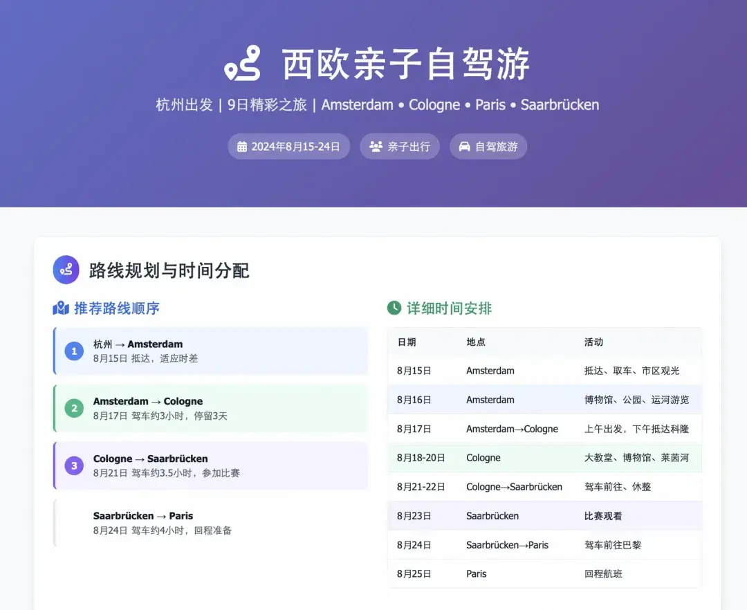 计划8月15到8月24或25去西欧旅游,杭州出发亲子游,共9天。