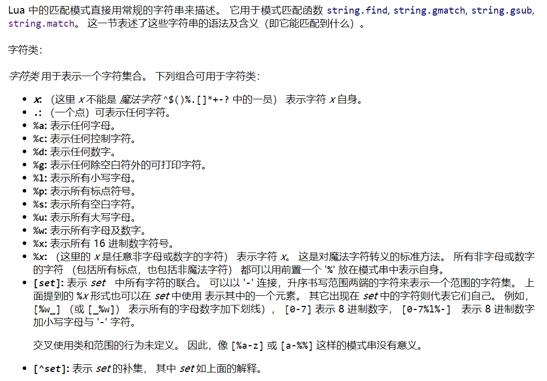 find( 'string' , 'strsub' , index )` 从起始位置(index)查找子串返回位置 `match( 'string' , '%s%d.....' )` 匹配捕获,返回子串的copy `gmatch( 'string', '%s%d' )` 全局匹配捕获,返回一个函数提供所有子串 `gsub( 'string' , 'go' , 'come' , count)` 替换字符串中所有go子串换count次