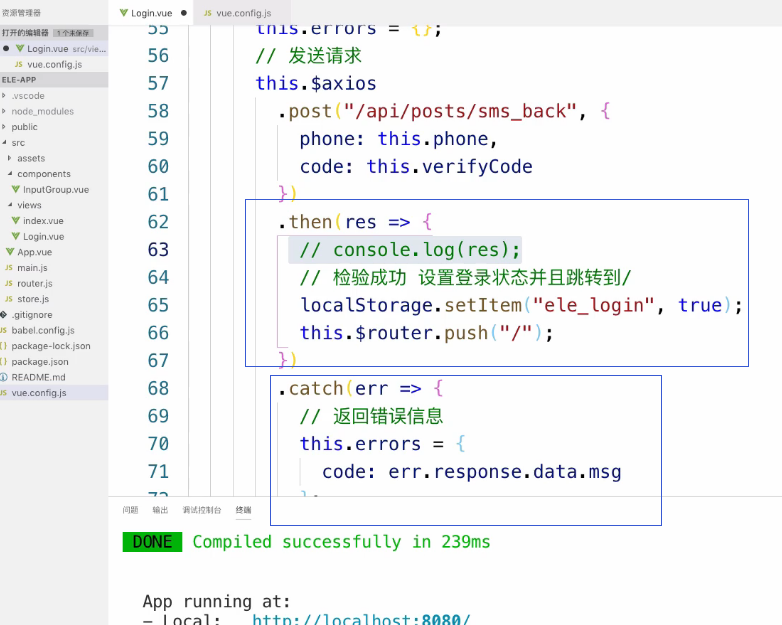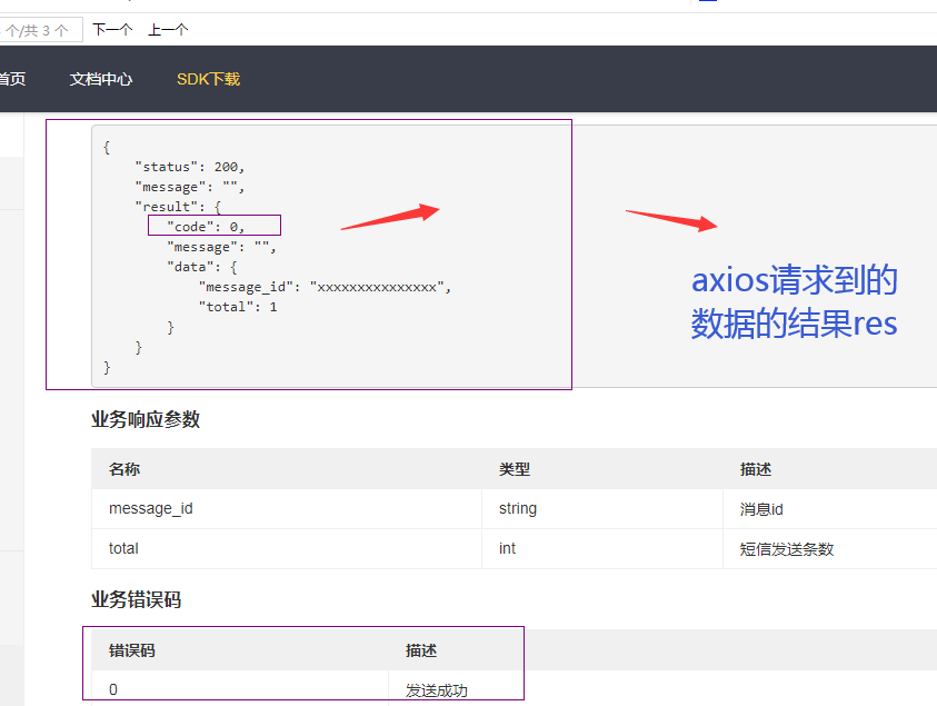 下面就是获取输入的验证码和输入的电话号码后把验证码和电话号码等等请求到通过短信API服务的网址,如何获取数据成功,那么就是输入正确,反之,输入错误